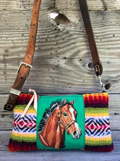 vintage reworked pony textile zip crossbody.